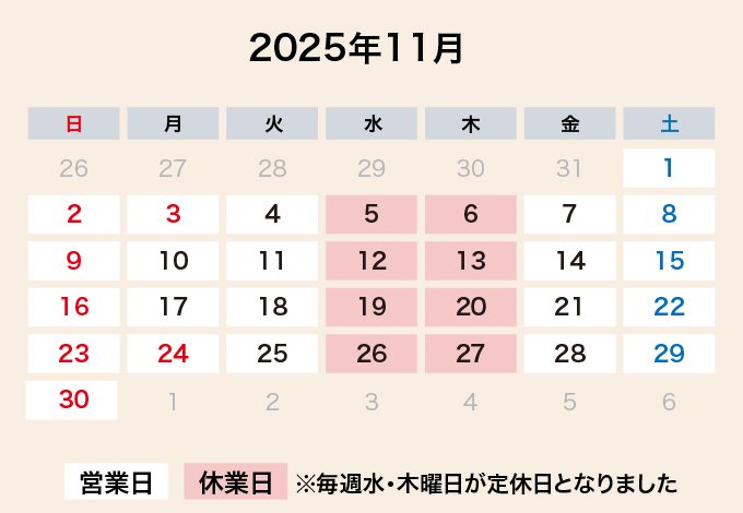 定休日/毎週水・木曜日定休